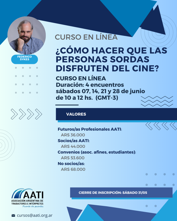 Modalidad: A distancia Nivel: Traductores audiovisuales, docentes, intérpretes, asesores sordos, personas interesadas en la temática. Inicio: 7.6.25 Duración: Cuatro semanas Lugar: Plataforma Zoom Programa: ver Descargar -