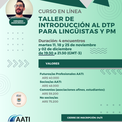 No socios: $75200 Socios AATI: $48000 Programa AATI Futuros Profesionales: $40000 Socios/as FAT, FIT LatAm, Red Vértice, AAILS, ACN, UBA, ACOTIP, Asociación Creando Nexos y PLECA: $59200 Estudiantes: $59200