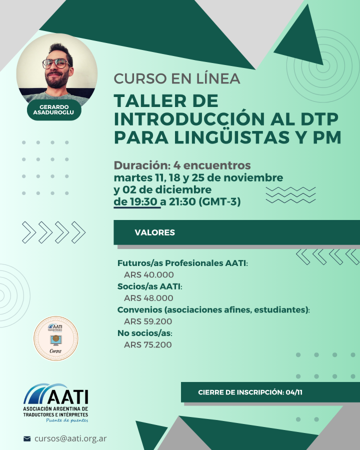 Modalidad: A distancia Nivel: Lingüistas, Project Managers y cualquier persona involucrada en el proceso de TEP Inicio: 11.11.25 Duración: Cuatro semanas Lugar: Plataforma Zoom Programa: ver Descargar -